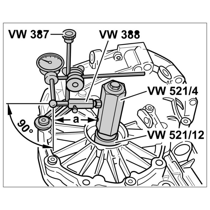 3. Screw together adjustable measuring lever VW 388 with adjustment device VW 521/4 and set the lever length of the gauge plunger to -a = 72 mm-.