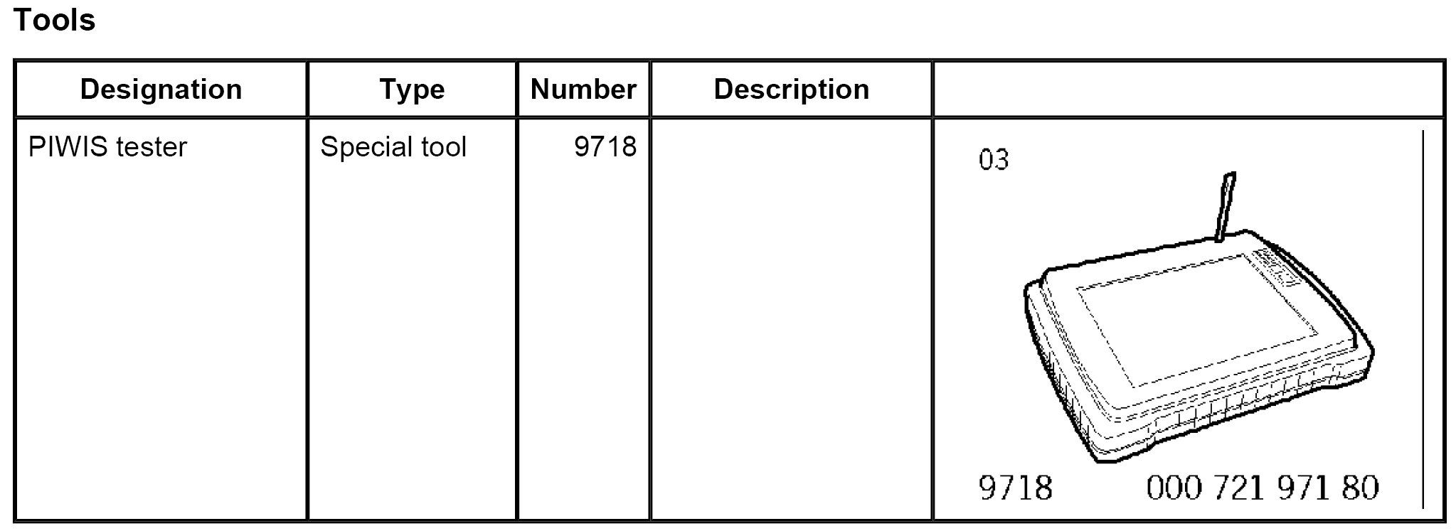 - If the gateway control module is replaced, the gateway control module must be coded using the PIWIS tester 9718. This is to adapt the Gateway control module to the vehicle and equipment.