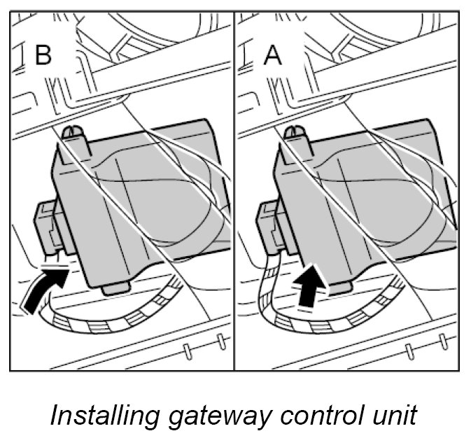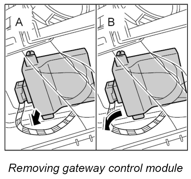 INFORMATION: The gateway control module is located under the radiator tank, accessible from inside the vehicle near to the driver.