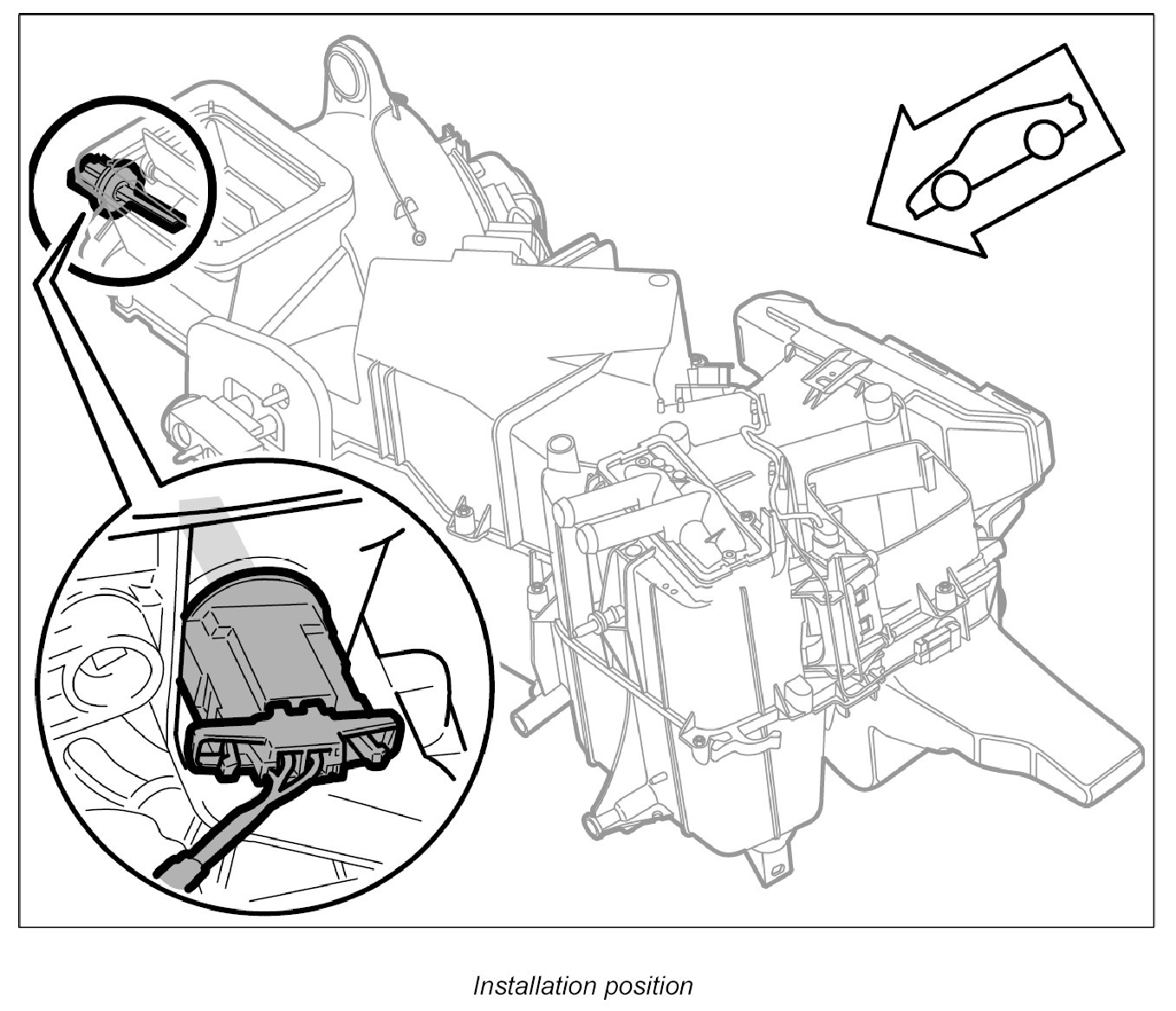 3. Turn temperature sensor through 90 degrees and pull it out of the heating/fresh-air unit.