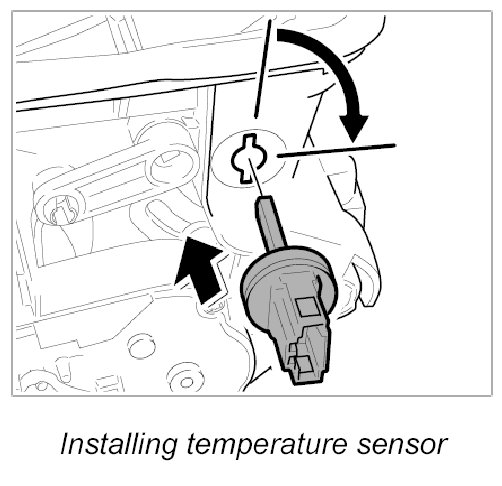 2. Insert temperature sensor into the heating/fresh air unit and turn through 90 degrees.