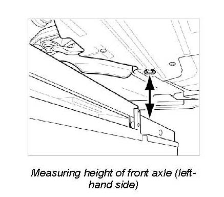 For the height check, place the vehicle on a level surface or on the measuring platform (ready to drive, with a full tank and tools but without driver or additional weights). Compress (push down) vehicle at front and rear axles 2-3 times and allow it to spring back freely.