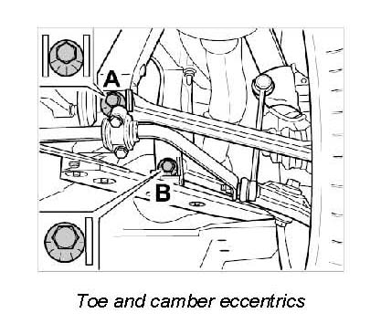After adjusting, tighten the lock nut of the toe eccentric to the prescribed tightening torque.