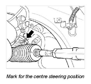 Preliminary work: Check whether the steering wheel is displaced with respect to the steering gear. To do this, center the steering gear as described below.
