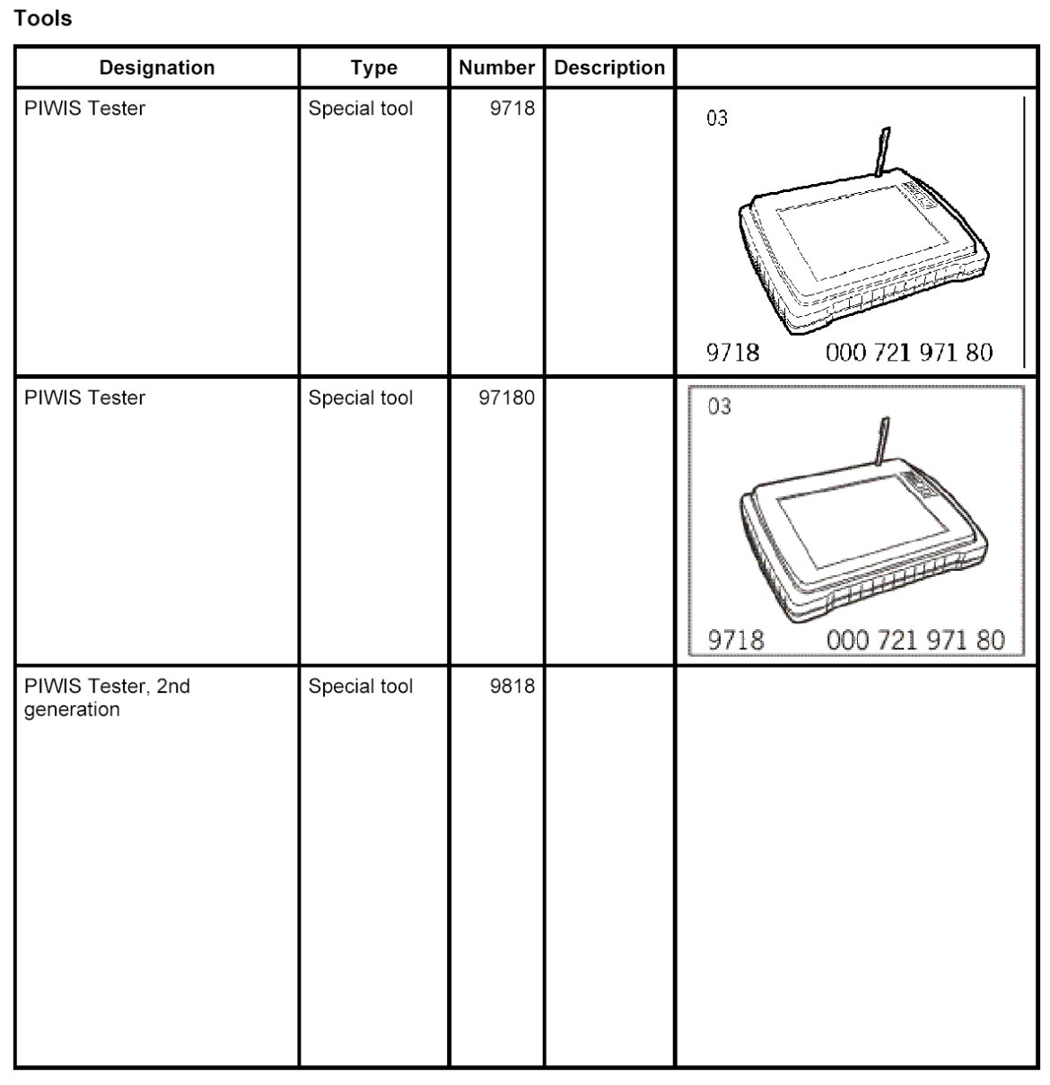 - Carry out tests only with the PIWIS Tester, 2nd generation 9818 diagnostic module; do not use test lamps, voltmeters or ohmmeters.