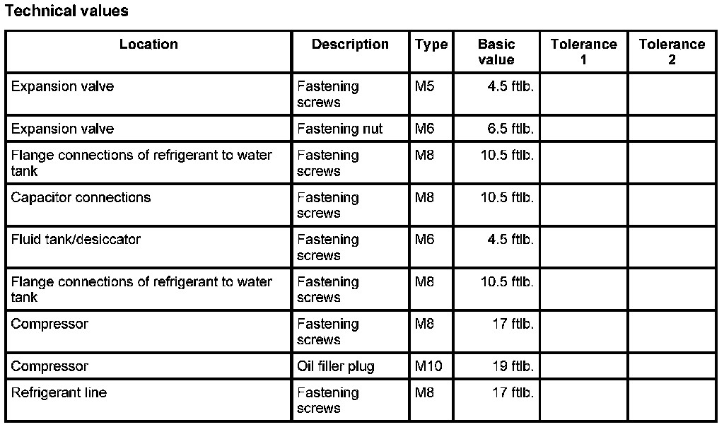 Tightening torques for air-conditioning system