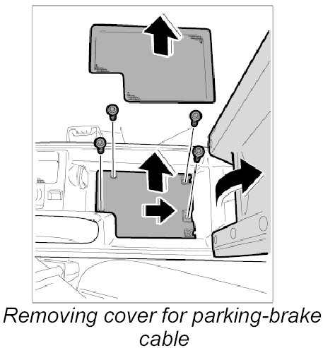 2. Unhook the parking-brake cable from the left side behind the parking-brake lever and push it back into the parking-brake cable guide.