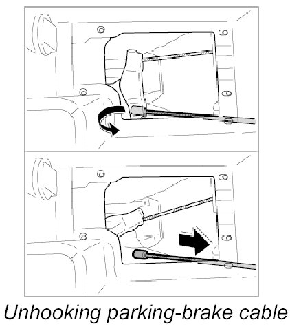 2.3. Unhook the left parking-brake cable and slide out through the guide.