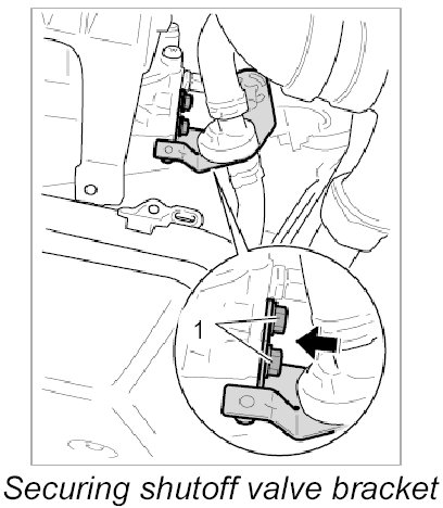 1. Place the shutoff valve bracket -1- onto the automatic transmission and secure with the fastening screws.