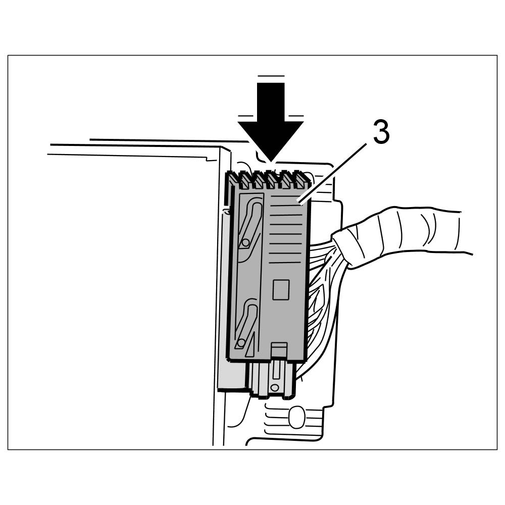3. Push amplifier into its brackets and clip on the metal clips -1-.