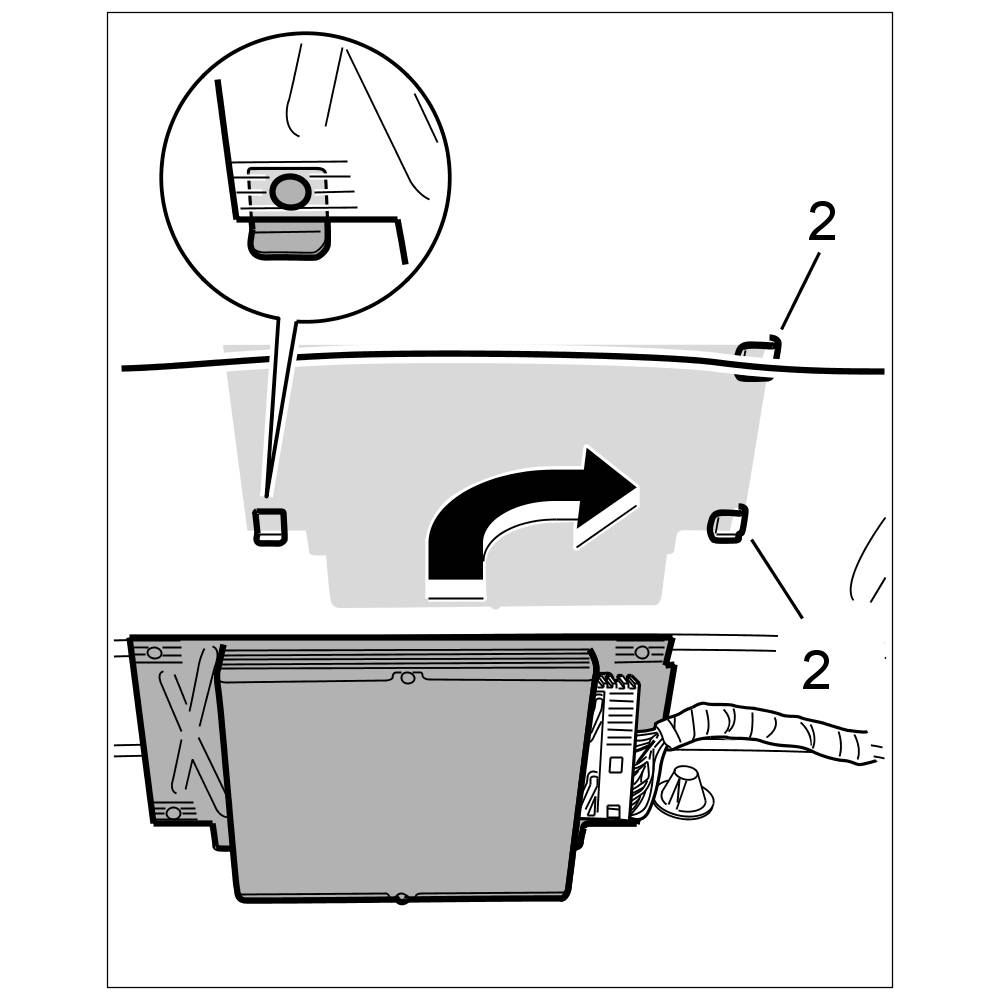 1. Remove panel for hazard warning triangle and tyre air bottle.