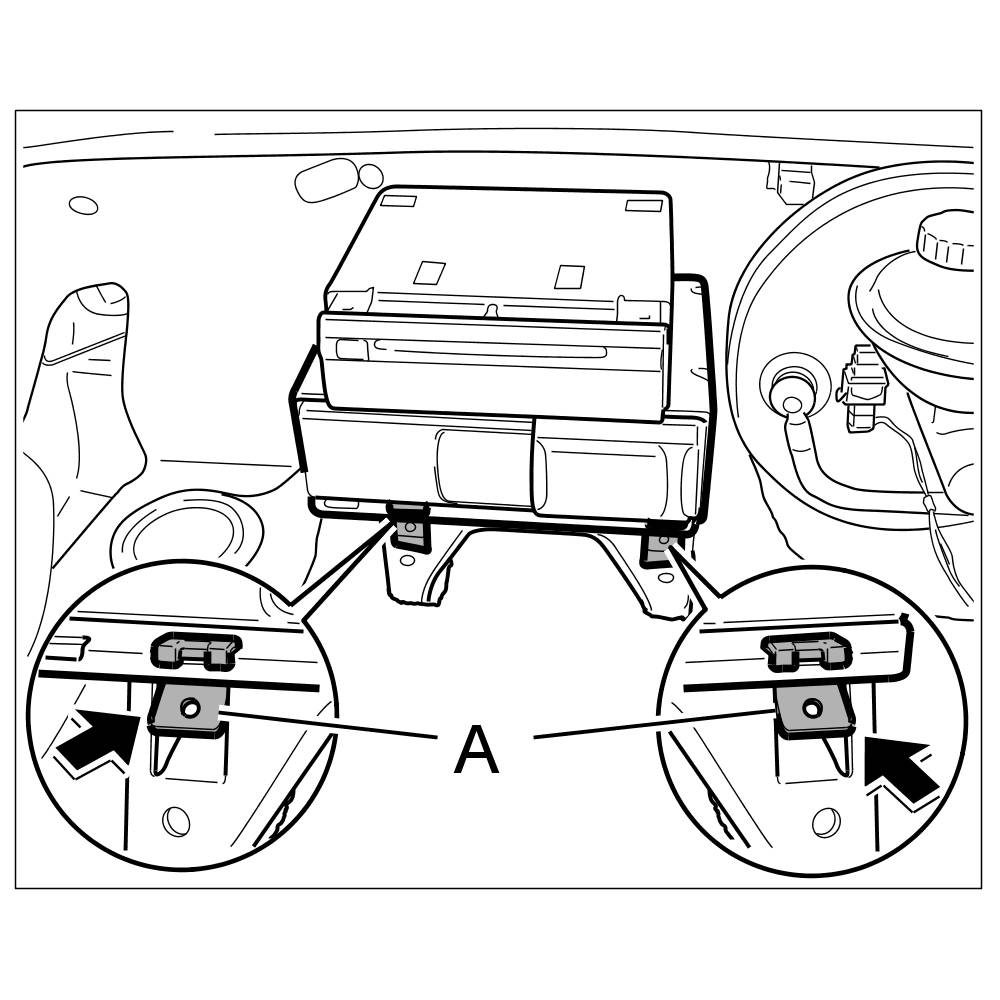 4. Position the support with the CD changer already attached on the body and move it backwards until the support clicks into place.