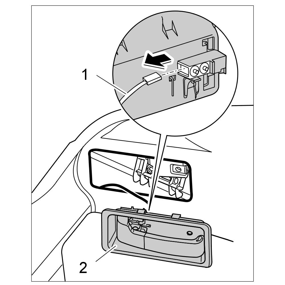 3. Disconnect electric plug connection -1- for microswitch and remove release handle -2-.