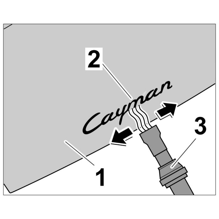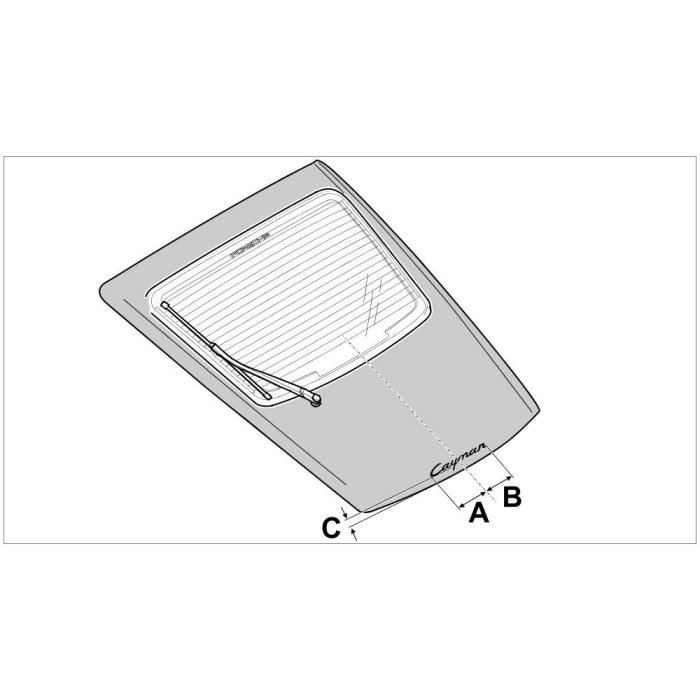2. Position logo -Cayman- with the dimensions -A and B- => Dimension: 264.7 mm+/-1 mm and -C- => Dimension: 66.1 mm+/-1 mm on the lid and stick it on.