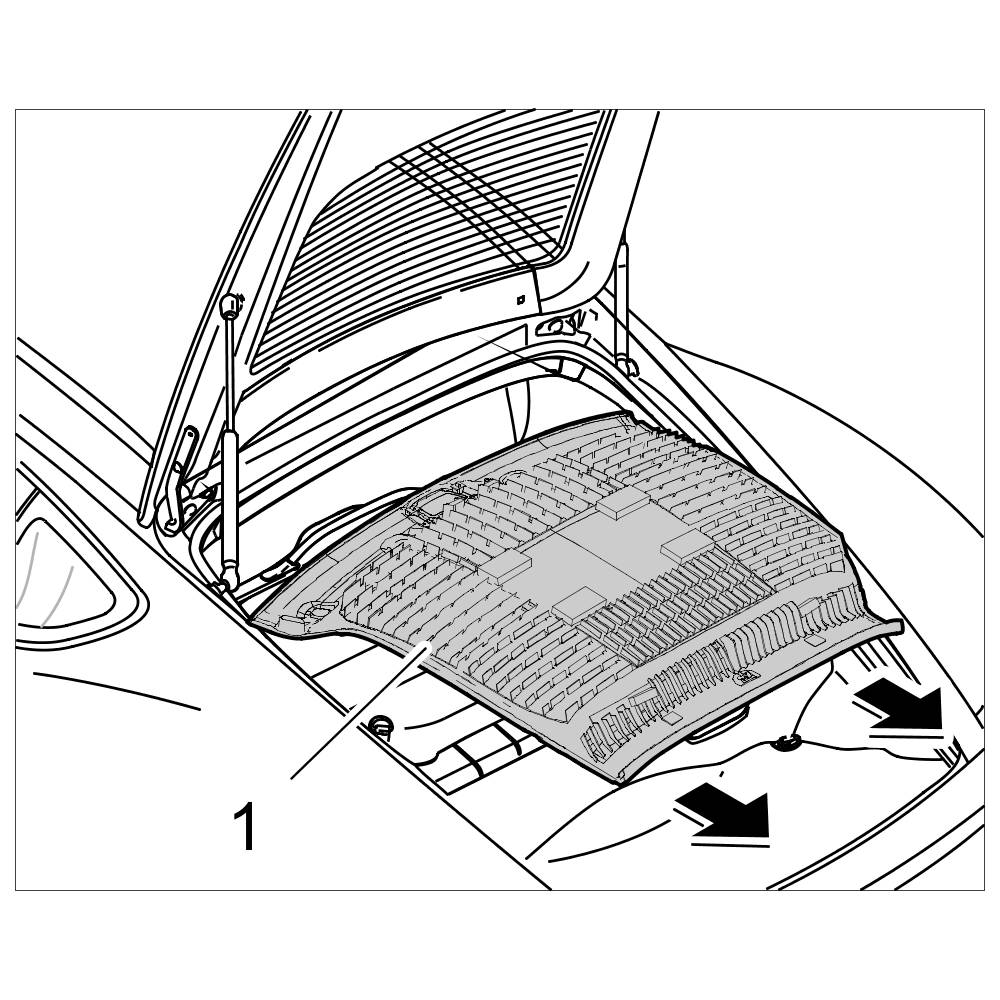 1. Guide headliner -1- into the vehicle through tailgate opening and position at roof frame.