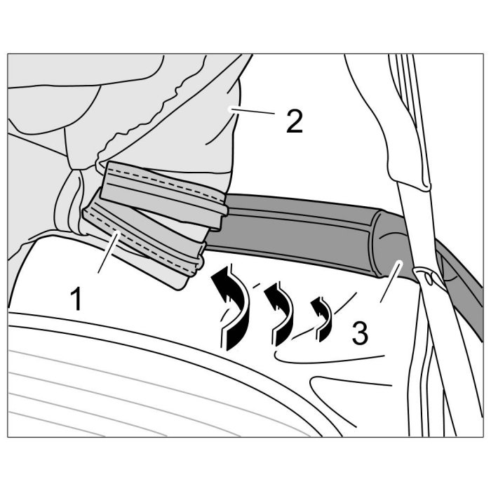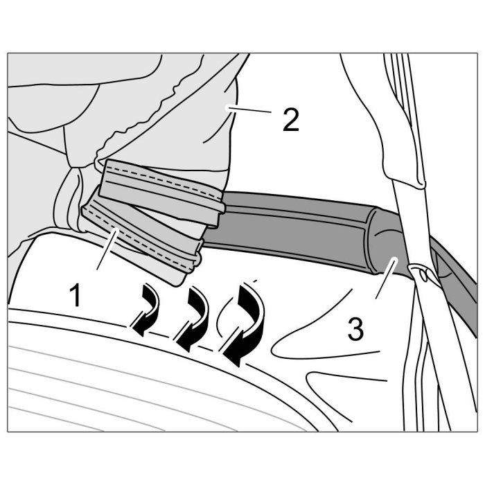 3. Place Velcro fastener -1- around tension strap -2- and press together (right and left).