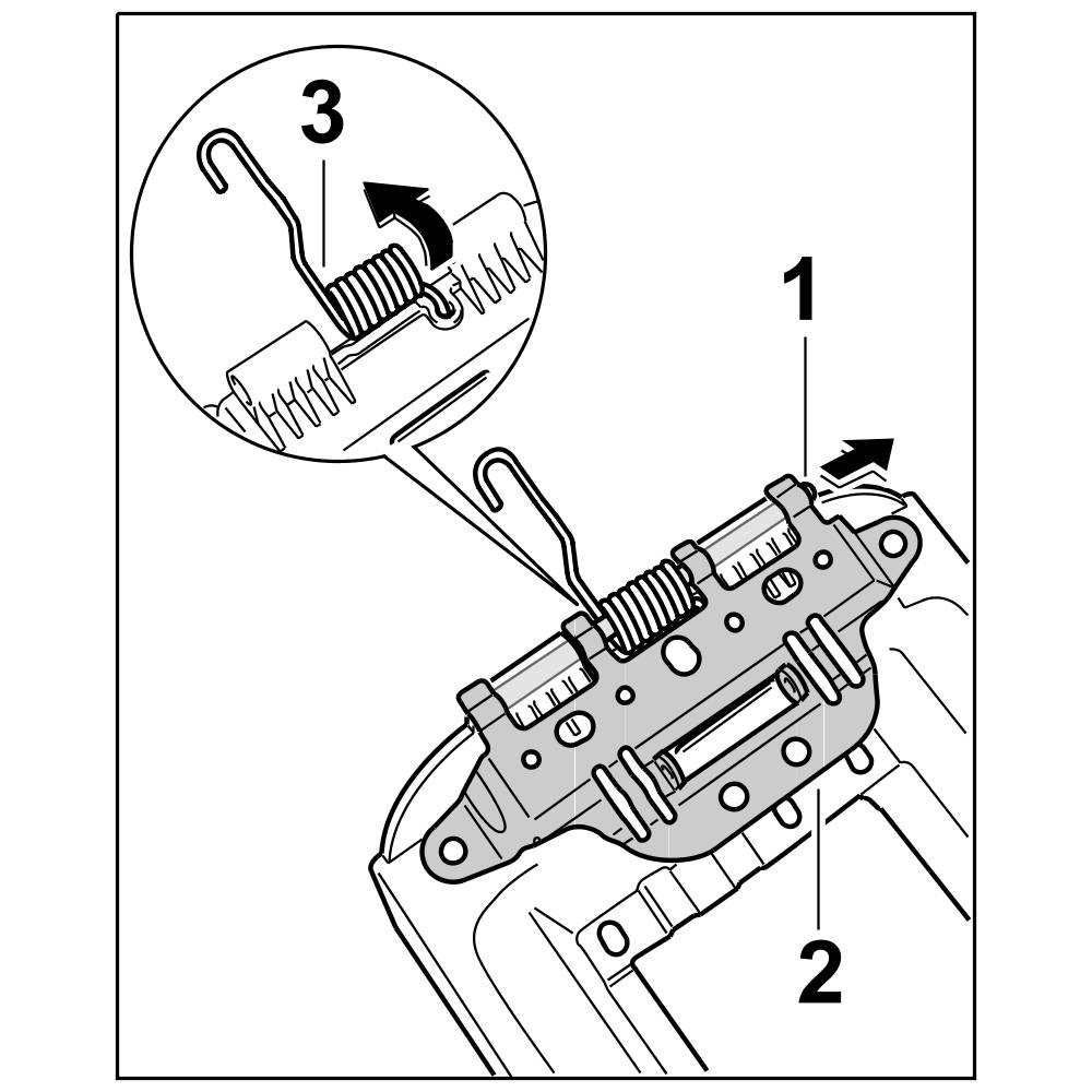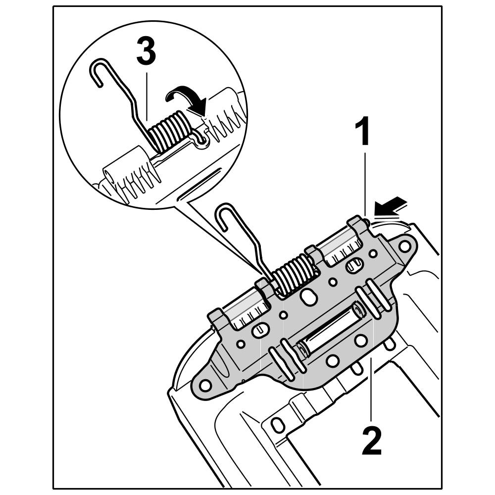 1.2. Position hinge -2- , push axle -1- through hinge and spring -3-.