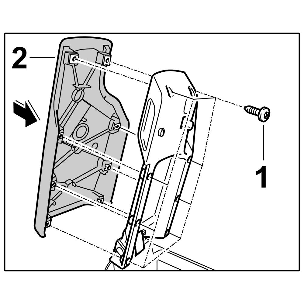3.2. Position lid for outer tray -2- and secure with the fastening screws -1-.