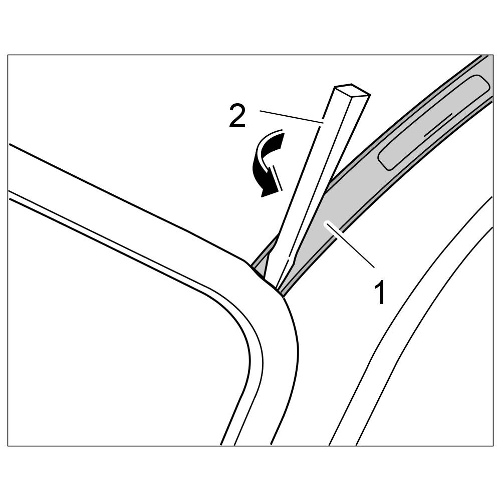 2. Lift roof joint cover strip -1- using a plastic spatula -2 - and unclip all the way along.