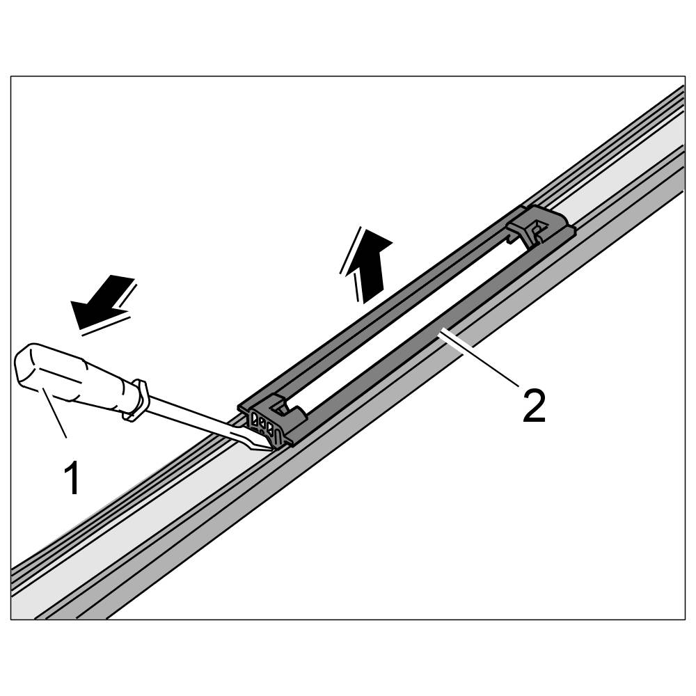 1. Insert a screwdriver -1- beneath both ends of the fold-out element -2- and press out.