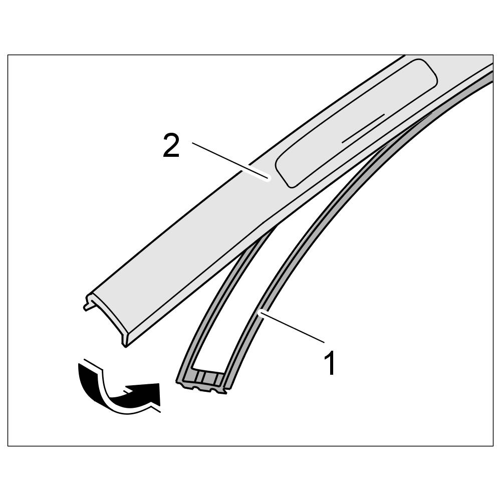 2. Push the roof joint seal -1- onto the roof joint strip -2- all the way round.