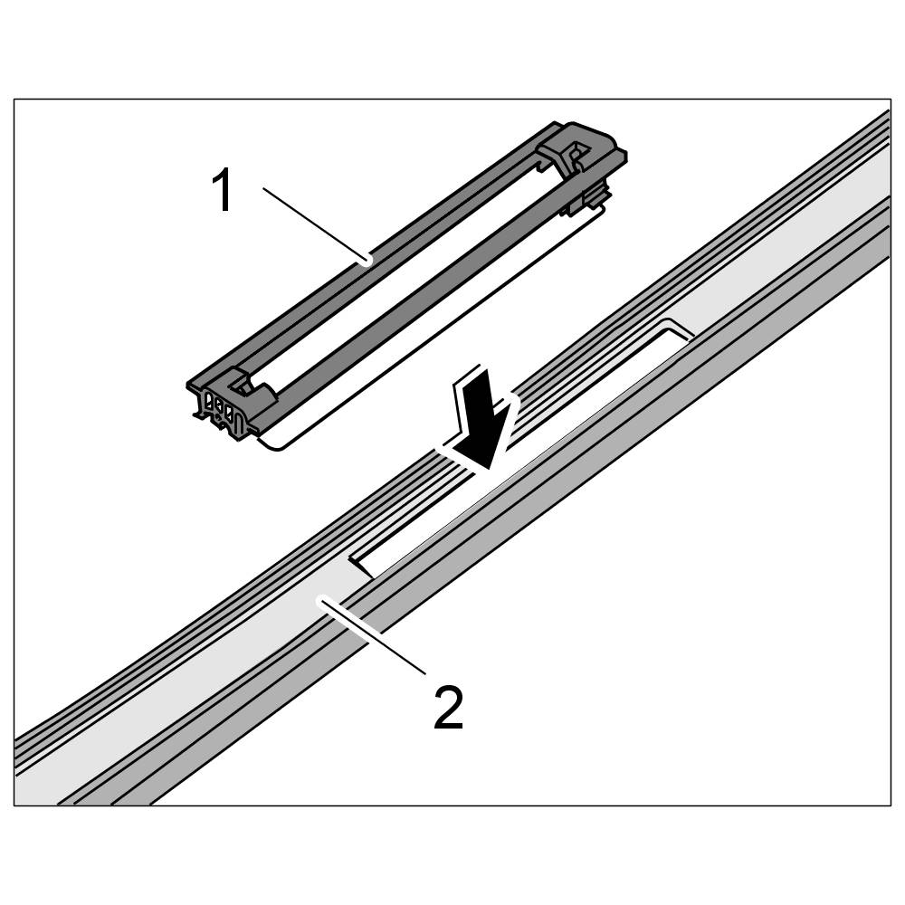 1. Position spreaders -1- (3 per roof channel) in the recesses, beginning at the front. Press the spreader right down into the roof channel.