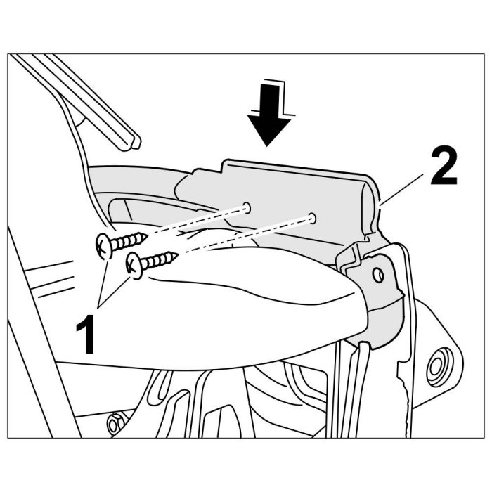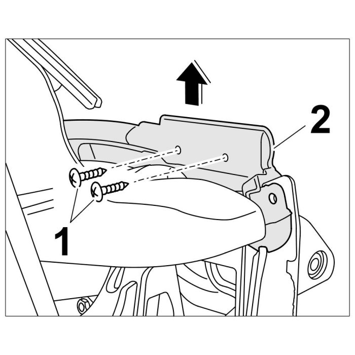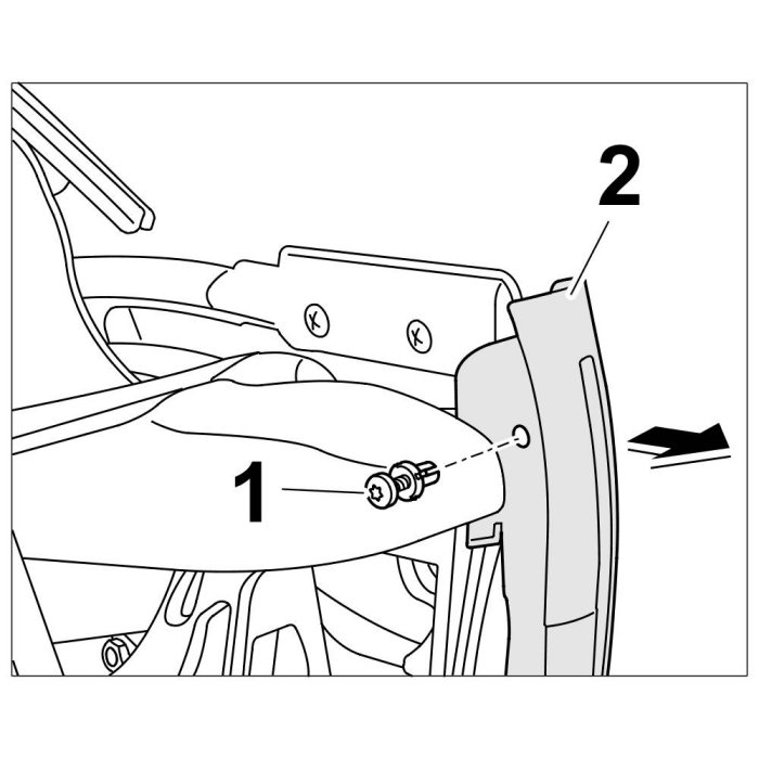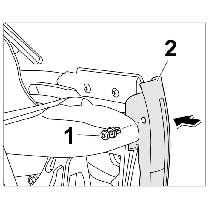 3. Unscrew fastening screws -1- in area of B-pillar on right and left and gently lift seal for convertible top compartment lid -2-.