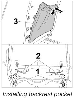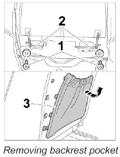 2. Pull backrest pocket -3- out slightly at the top and disengage upwards.