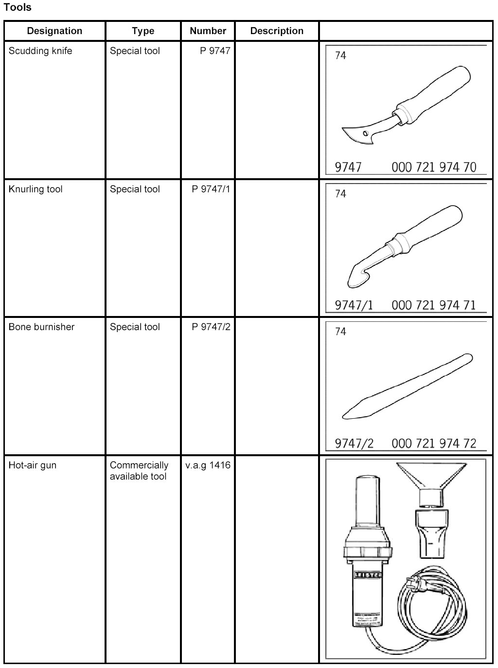 1. If creases have formed, partially heat the affected areas of the cover with the hot-air gun and smooth out the cover using the special tool.