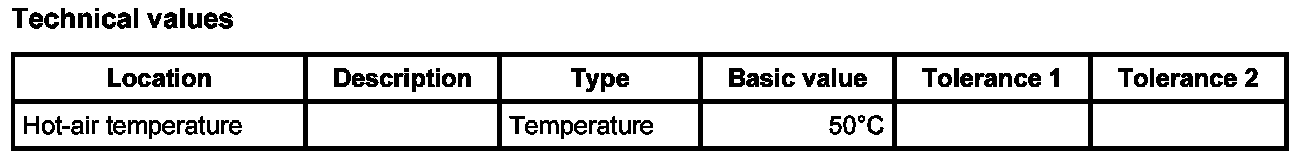 - The hot-air temperature must always be Temperature: 50 degrees C.