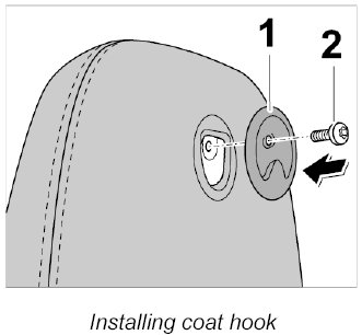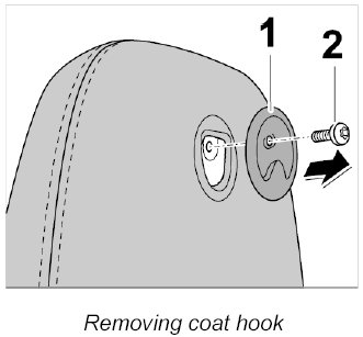 1. Unscrew fastening screw -2- and remove coat hook -1-.