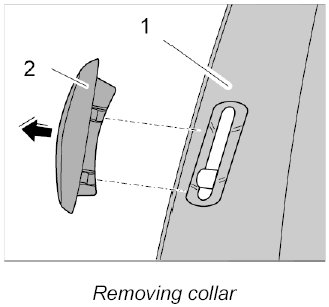 2. Insert a plastic wedge between the backrest cover -1- and the collar -2- and unclip collar.