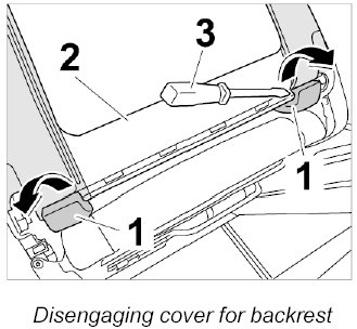 1. Press out cover for backrest -1- from the backrest shell -2- lower left and right using a screwdriver -3-.