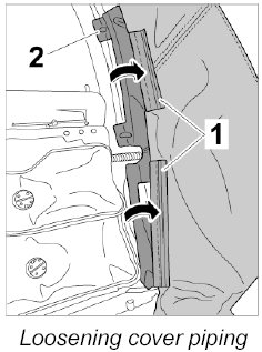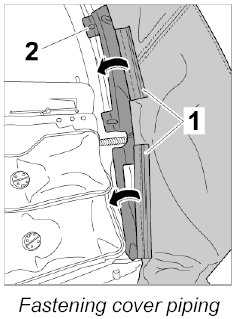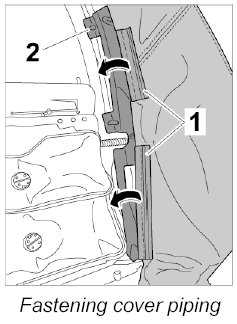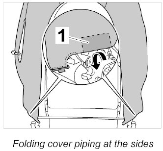 5. Fold cover piping -1- at the sides in direction of arrow.