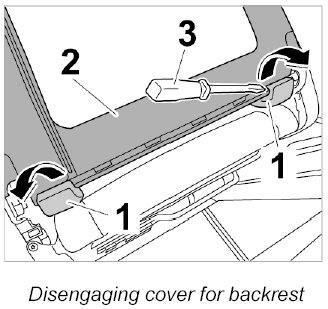 10. Press plastic strip -2- on cover for backrest -1- out of the fixing clips -3-.