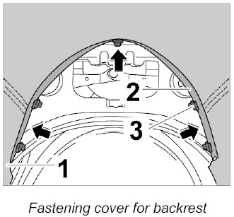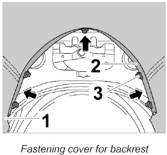 4. Press plastic strip -2- on cover for backrest -1- into the fixing clips -3-.