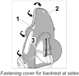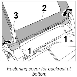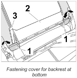 3. Press plastic strip -2- on cover for backrest -1- into the fixing clips -3-.