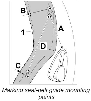 INFORMATION: If the backrest cover -1- has been replaced after repairs, the seat-belt guide mounting points must be measured again and marked.
