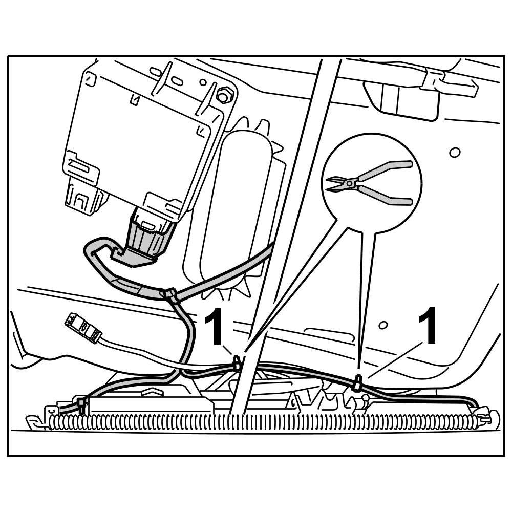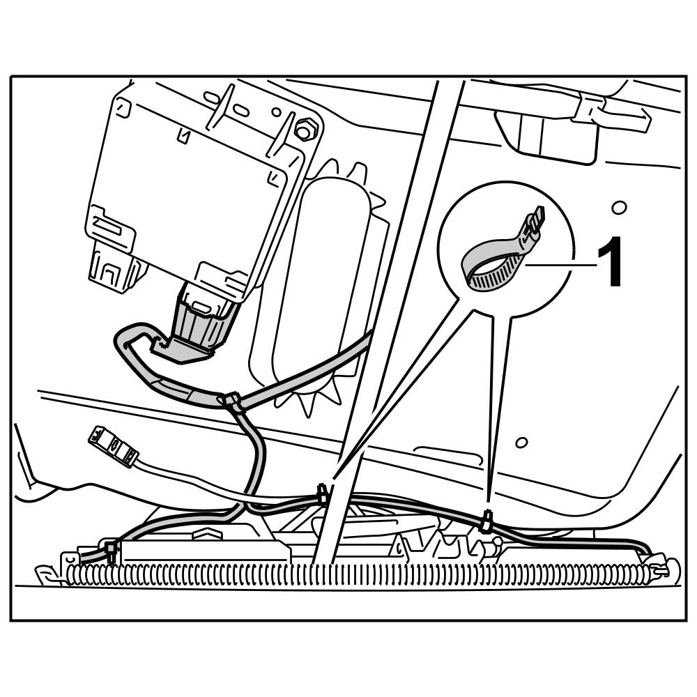 2.2. Secure wire harness for AWS to the seat shell at the left and right using new tie-wraps -1-.
