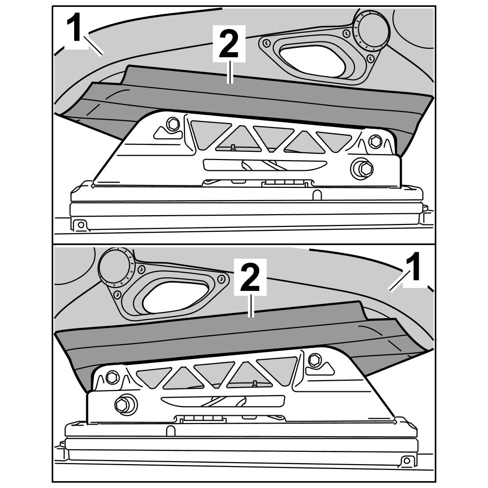 2. Mask the seat shell -1- at the left and right in the marked area with adhesive tape -2- (2-3 layers).