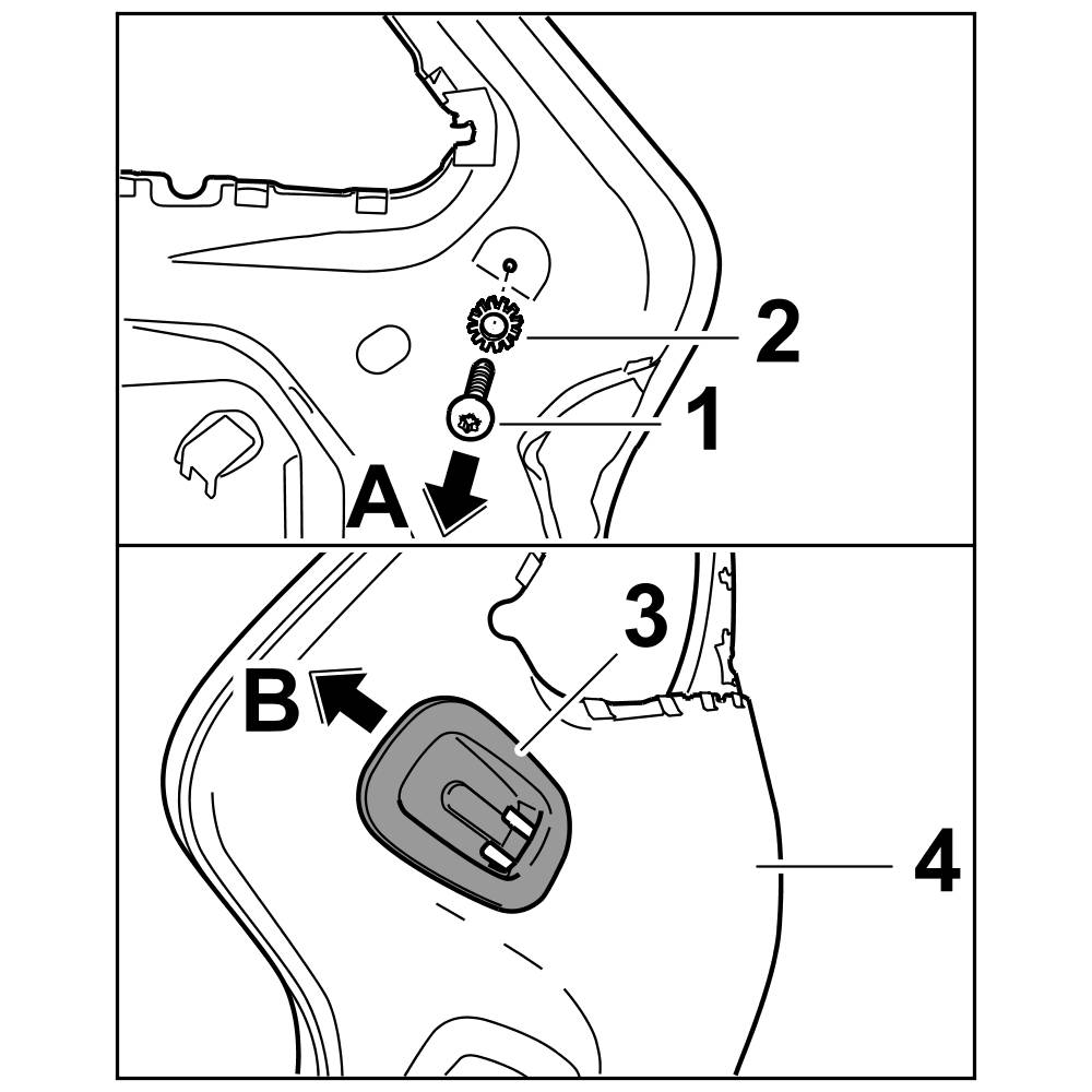 2. Secure the collar -3- with the fastening screw -1- and washer -2- ( -arrow B- ). => Tightening torque: 3 Nm (2 ftlb.)