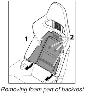 2.1. Remove front and rear part of seat cushion. Refer to Removing and installing seat cover (folding sports bucket seat)