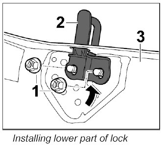 4. Tighten fastening nuts -3- and -4- on the upper and lower part of the lock. Tightening torque: 22 Nm (16 ftlb.) ± 3 Nm ( ± 2 ftlb.), Tightening torque: 22 Nm (16 ftlb.) ± 3 Nm ( ± 2 ftlb.)
