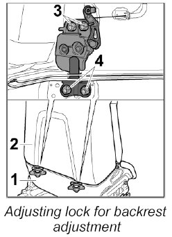 1. Lock the backrest so that the upper part of the lock -1- engages in the lower part of the lock -2- without strain.
