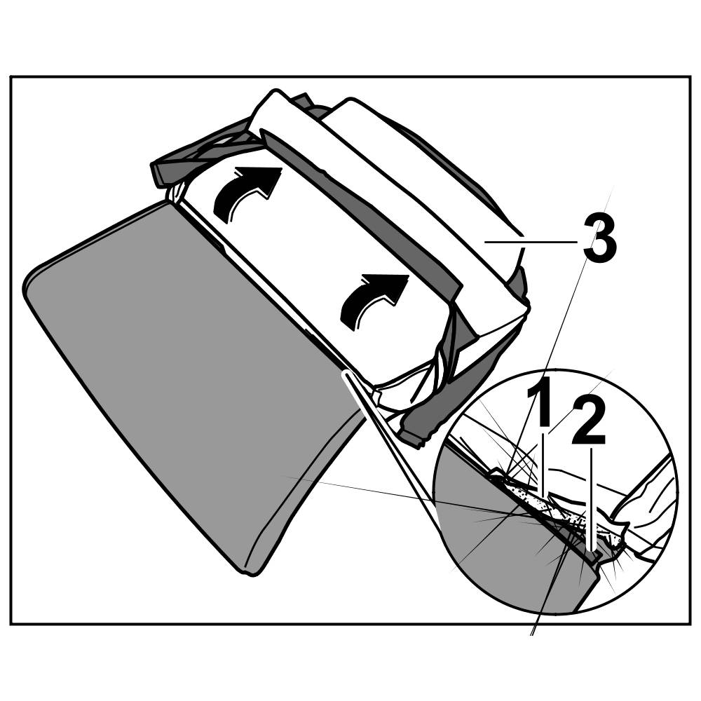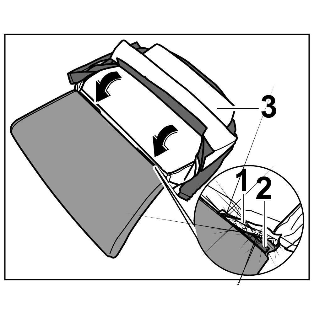 3. Carefully detach Velcro strip -1- on the cover from the Velcro fastener on the front of the padding -2- ( -arrows- ).
