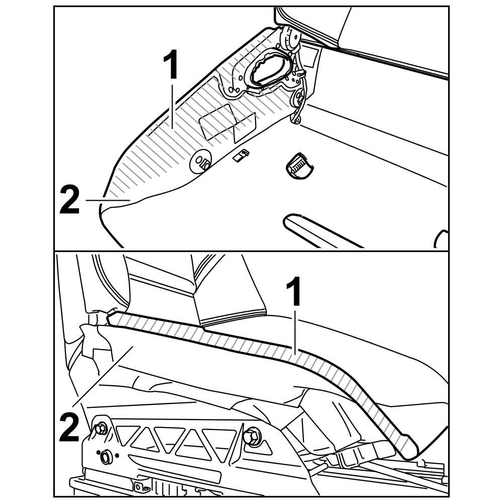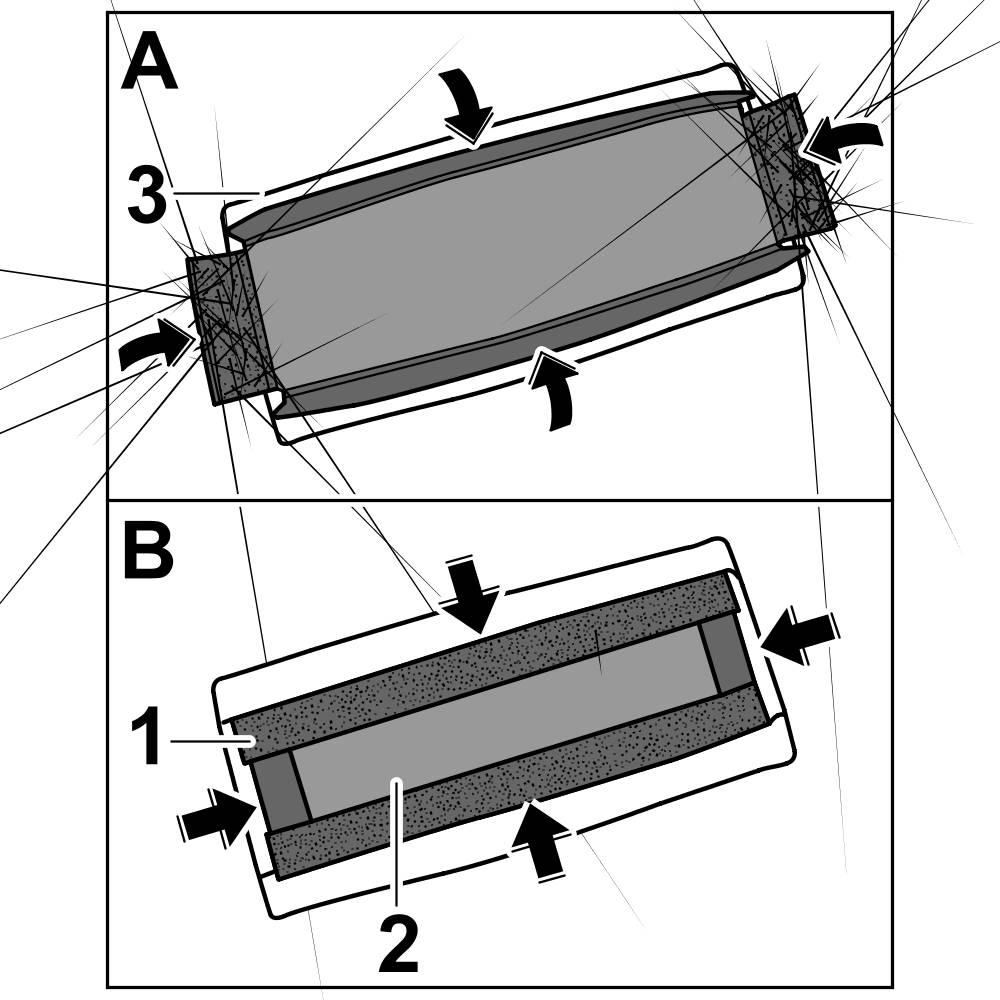 1. Apply adhesive -2- to the marked area of the padding -1-.