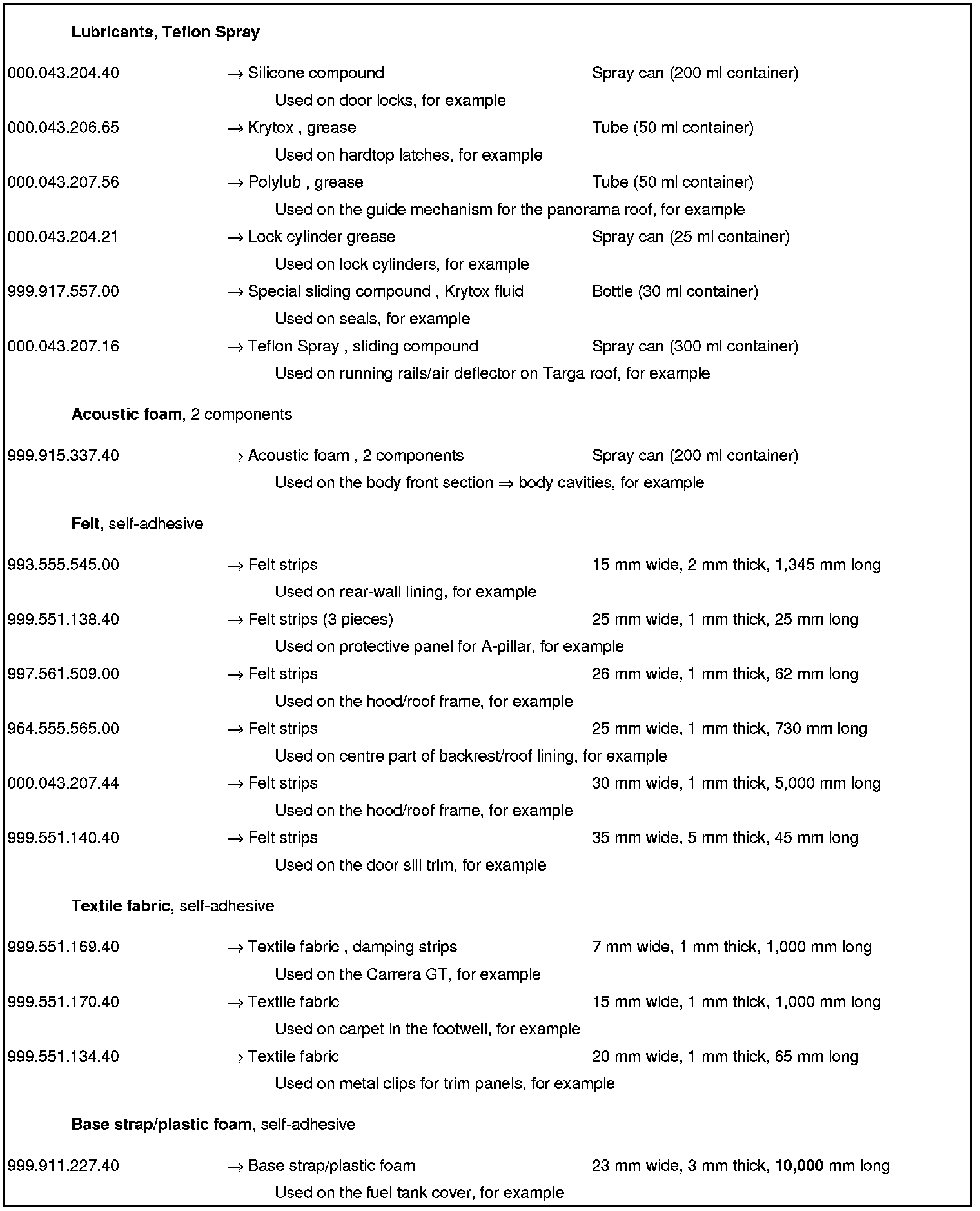 Various materials for different areas of application are listed below for eliminating disturbing noises.