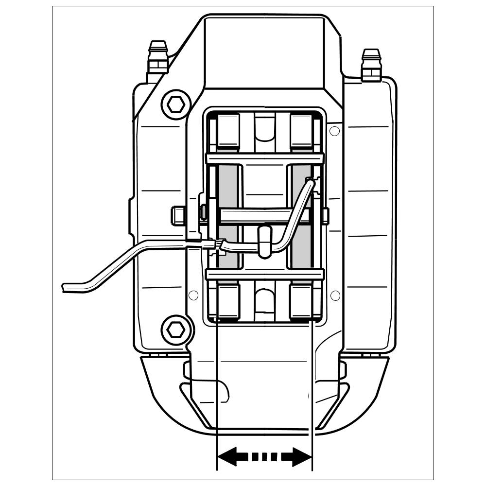 2.1. Use the piston resetting fixture Nr.144 to set the brake pads back slightly and uniformly -direction arrow-.