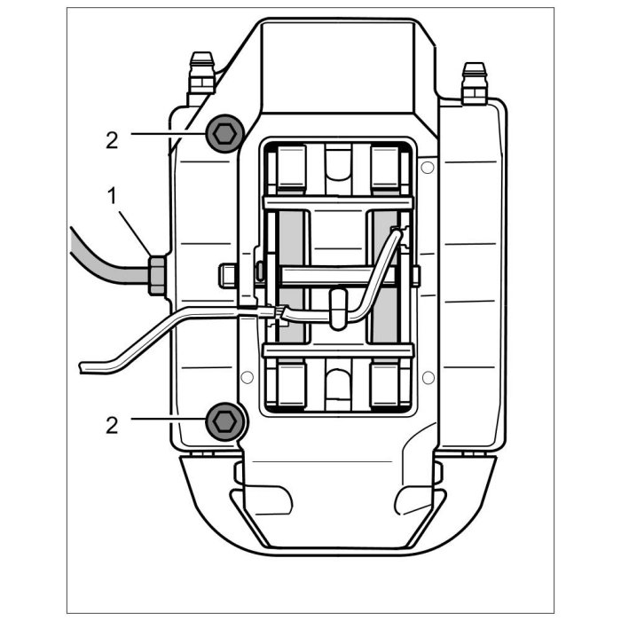 2.3. Loosen fastening screws -2- and remove the brake caliper (with brake pads fitted).