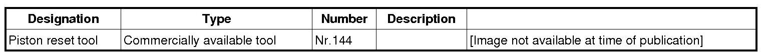 2. Reset the brake pistons using the piston reset tool No. 144 if necessary. Remove a little brake fluid from the reservoir by suction if necessary in order to prevent an overflow.